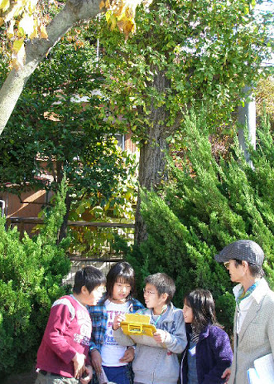 まずは、すべての感覚を使って木に触れる活動。カードを使って木への近づき方を知り、木のおもしろさに気づきます。 それらをもとにグループごとにお気に入りの木を学校の木に決めて、クラスのみんなに推せん。それぞれの学校の木への愛着を高める中で、一本一本の木のすばらしさを感じていきます。 誇りを持てる学校の木。これはこのプログラムから子どもたちへのプレゼントになるはずです。