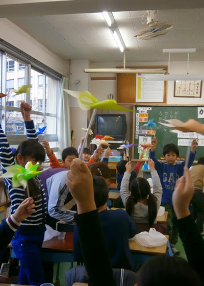 体験するのは、かざぐるまや紙コプターづくりなどの工作、シャボン玉などの簡単な遊びです。このプログラムでは、そんな楽しい遊びの中で、風は貴重なエネルギー源であることに気づいていきます。