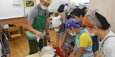 特別支援学級での体験学習にみそ・とうふを