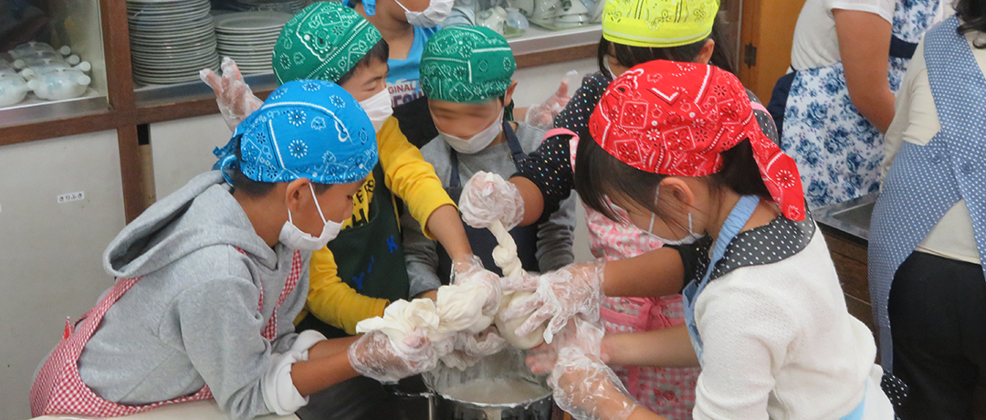 大豆からとうふをつくるプログラム。途中、豆乳やゆば、おからなどが登場し、大豆の変身を実感できるほか、最後に完成したとうふを食べる達成感を味わえます。導入の学習や大豆クイズを通して、大豆由来の食品が日本人の食生活で果たす役割の大きさを実感できるプログラムです。