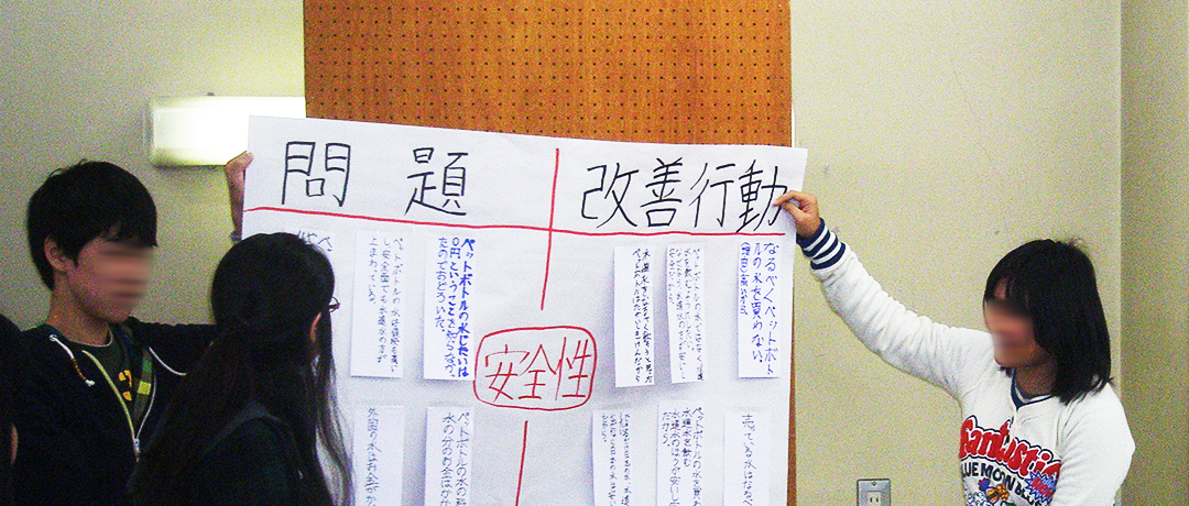 飲み比べでその味の違いを感じ、映像資料を用いておいしさ・安全性・値段・環境への影響について児童一人ひとりが自分の気づきから課題をまとめ、その改善に向けて目標を考えます。