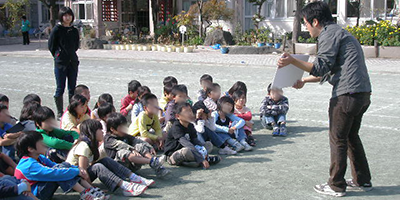 紙芝居のあとは、太陽のエネルギーを使った実験に挑戦。